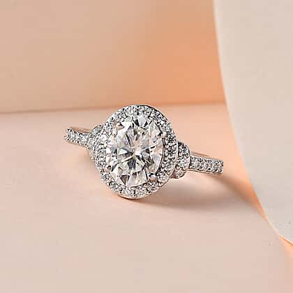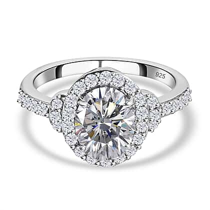 Moissanite Ring in Platinum Overlay Sterling Silver 2.27 Ct.