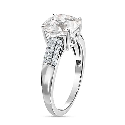 Moissanite Ring in Platinum Overlay Sterling Silver 3.80 Ct.