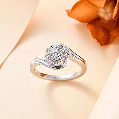 Moissanite Ring in Platinum Overlay Sterling Silver