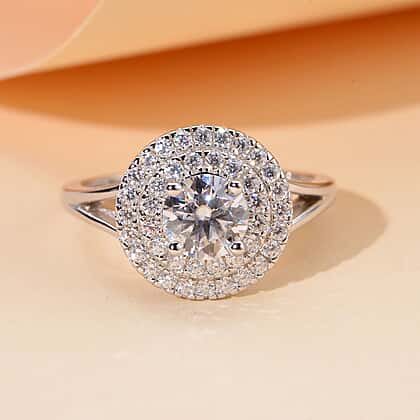 Moissanite Ring in Rhodium Overlay Sterling Silver 1.080 Ct.