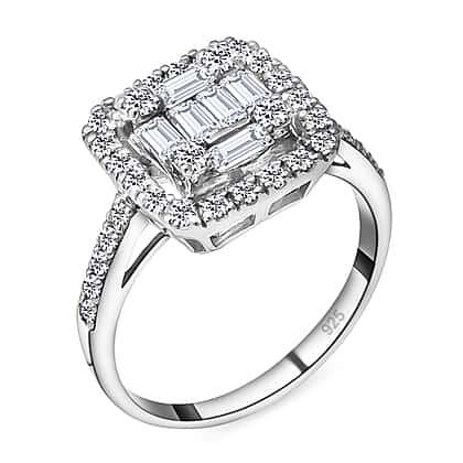 Moissanite Ring in Rhodium Plated Sterling Silver 1.14 Ct.