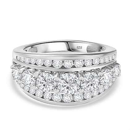 Moissanite Ring in Rhodium Overlay Sterling Silver 1.96 Ct.