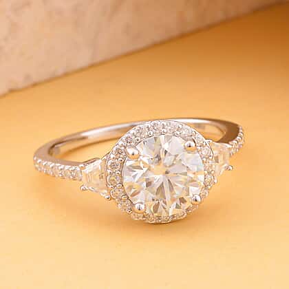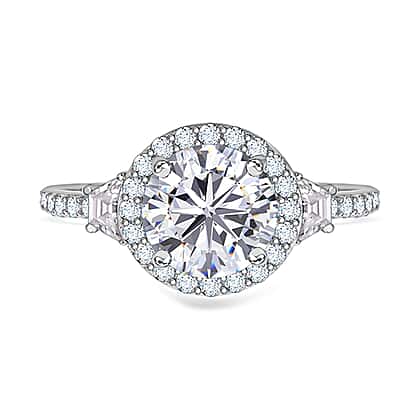 Moissanite Ring in Rhodium Overlay Sterling Silver 2.60 Ct.