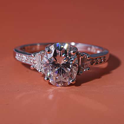 Moissanite Ring in Rhodium Overlay Sterling Silver 2.60 Ct. Metal Wt - 4.00 Gms.