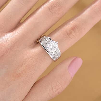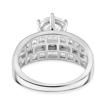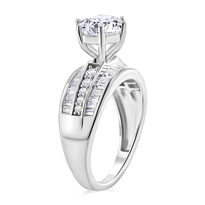 Moissanite Ring in Rhodium Overlay Sterling Silver 3.15 Ct
