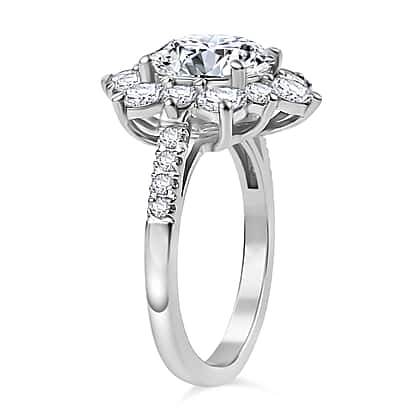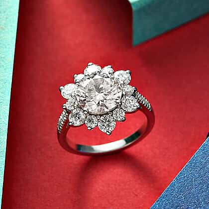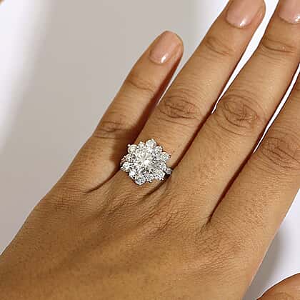 Moissanite Halo Ring in Rhodium Overlay Sterling Silver 3.90 Ct.