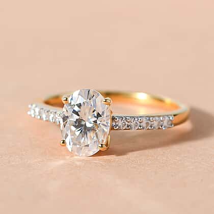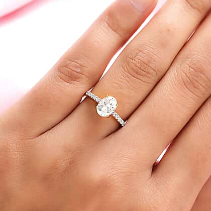 Moissanite Ring in Gold Plated Sterling Silver 1.49 Ct.