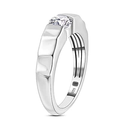 Moissanite Solitaire Band Ring in Platinum Overlay Sterling Silver