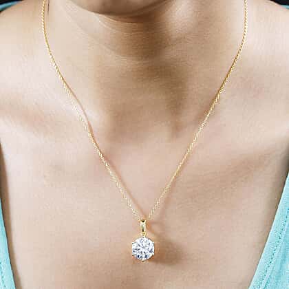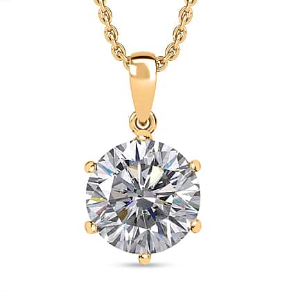 Moissanite Solitaire Pendant with Chain (Size 20) in 18K Vermeil Yellow Gold Plated Sterling Silver Wt. 5.37 Gms 5.700 Ct.