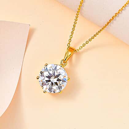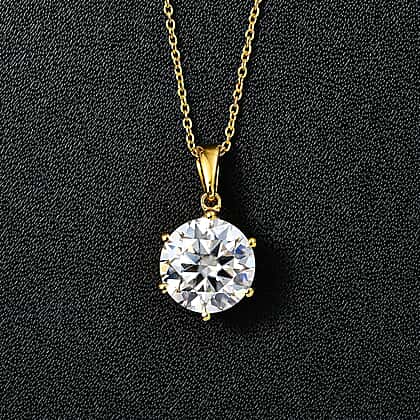 Moissanite Solitaire Pendant with Chain (Size 20) in 18K Vermeil Plated Sterling Silver 5.70 Ct, Silver Wt. 5.37 Gms