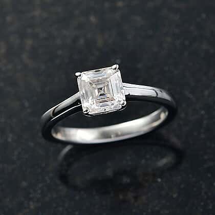 Elegant and unfussy ring styles stand the test of time. Like this Moissanite Solitaire Ring that features clean lines, simple setting, and a sparkling gemstone at the centre. This solitaire design helps the octagon-cut moissanite at the heart take the centre stage. It offers a bold and statement-making look to the ring as it features a lot of facets which helps to enhance the fire and brilliance of the ring. Crafted in platinum overlay sterling silver, this ring features a smooth shank. This makes for a timeless piece that will look great on anyone! It also uses a sense of balance and proportion ,which makes it look alluring.