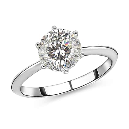 Moissanite Solitaire Engagement Ring in Rhodium Overlay Sterling Silver 2 Carat
