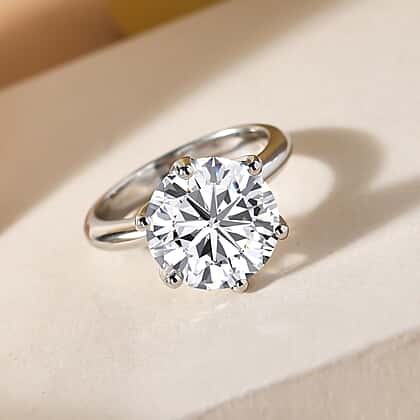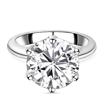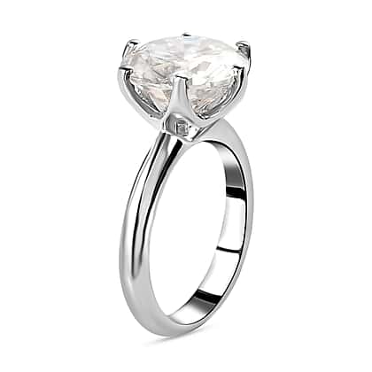 Moissanite Solitaire Ring in Platinum Overlay Sterling Silver 4.92 Ct.