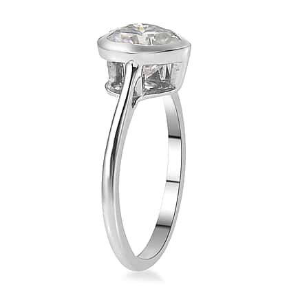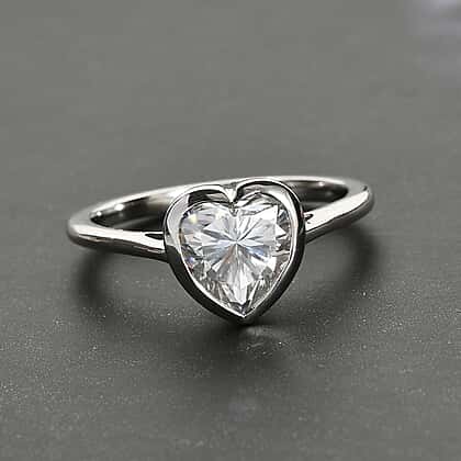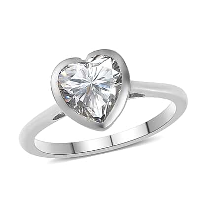 Moissanite Solitaire Heart Ring in Platinum Overlay Sterling Silver