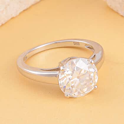 Moissanite Solitaire Ring in Rhodium Overlay Sterling Silver 3.00 Ct