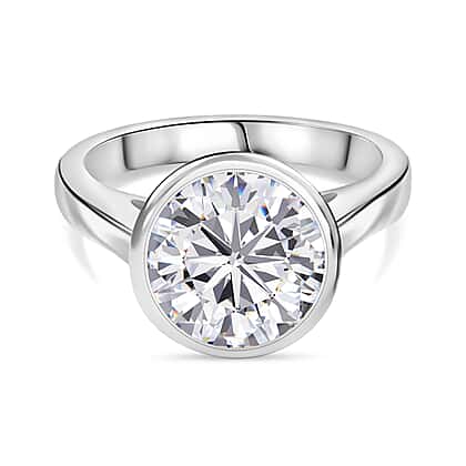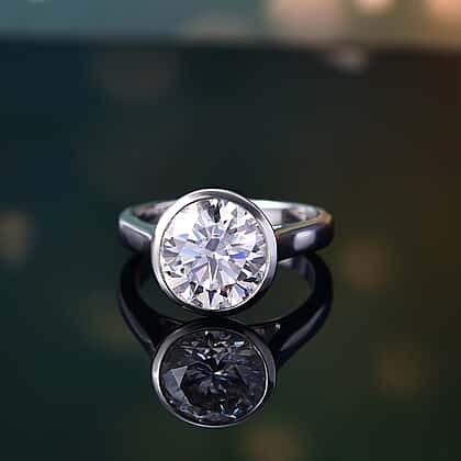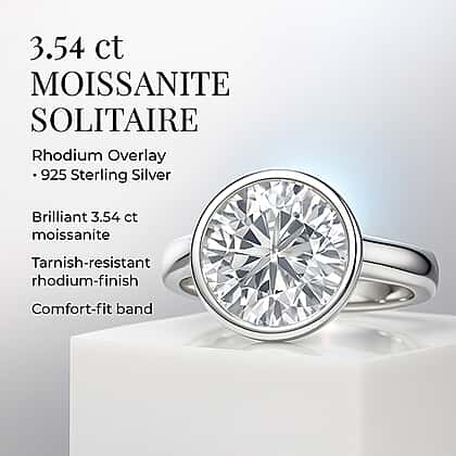 Moissanite Solitaire Ring in Rhodium Overlay Sterling Silver 3.54 Ct.