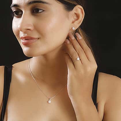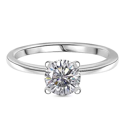 Moissanite Solitaire Ring in Rhodium Overlay Sterling Silver
