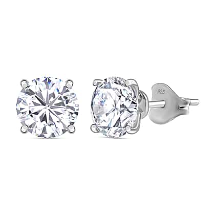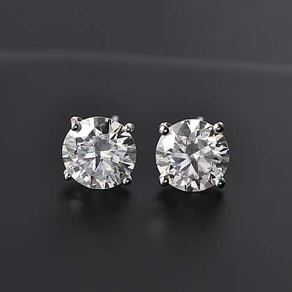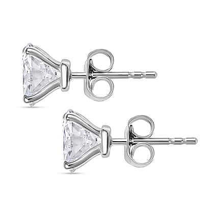 Moissanite Solitaire Stud Earrings in Rhodium Overlay Sterling Silver