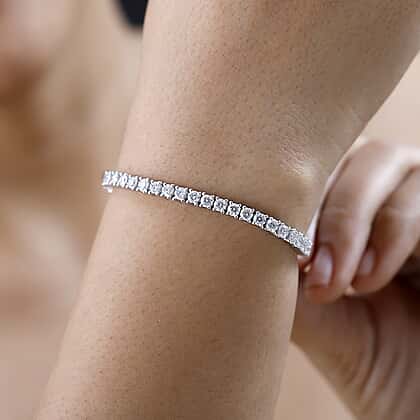 Moissanite Tennis Bracelet (Size - 7.5) in Platinum Overlay Sterling Silver 6.32 Ct, Silver Wt. 11.02 Gms