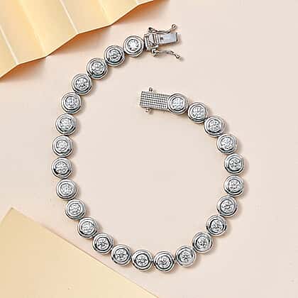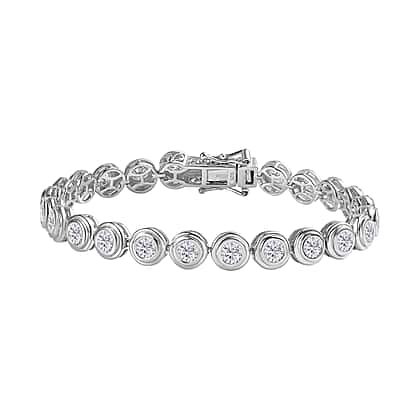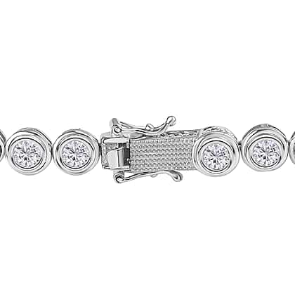 Moissanite Tennis Bracelet (Size - 8) with GB Lock Box in Platinum Overlay Sterling Silver 6.19 Ct, Silver Wt. 15.81 Gms.
