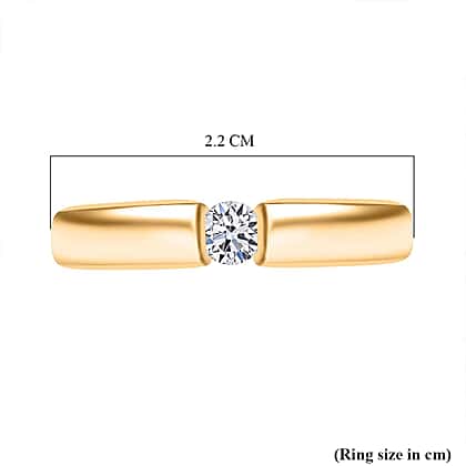 Stylish and classy, this solitaire ring features a moissanite gemstone at the centre of the band. Carefully set in a tension setting that holds the gemstone as if floating at the centre. This ring is crafted in luminous yellow gold plating on 925 sterling silver and offers a bright and polished finish. The metal has hypoallergenic properties, making it safe and secure for sensitive skin. Classy yet understated, this piece is suitable for daily wear and gifting to your special one.