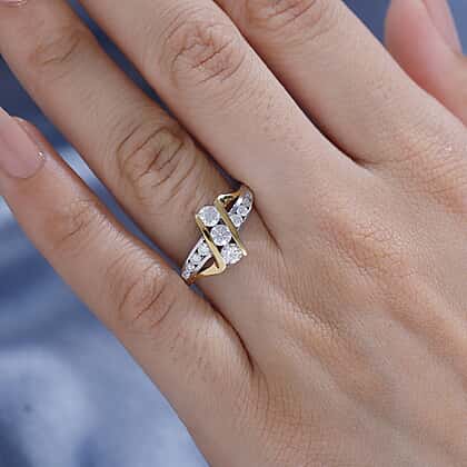 Moissanite Thunderbolt Trilogy Ring in 18K Vermeil Yellow Gold Plated & Rodium. 0.81 Ct.