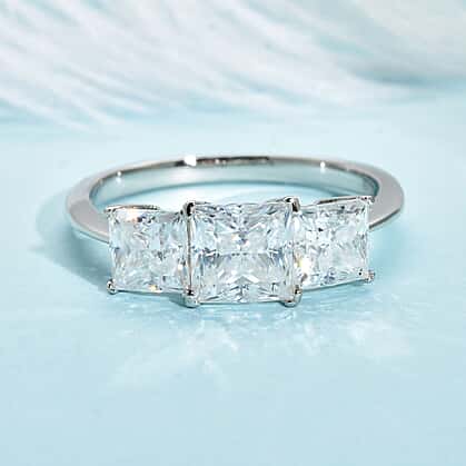Moissanite Trilogy Ring in Rhodium Plated Sterling Silver 2.00 Ct.