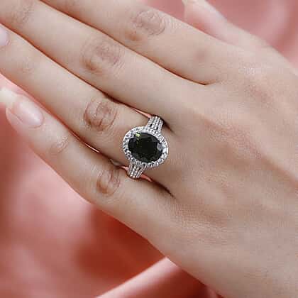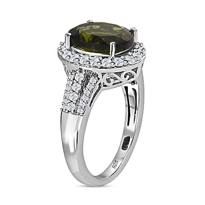Moldavite and Natural Zircon Ring in Platinum Overlay Sterling Silver 3.94 Ct.