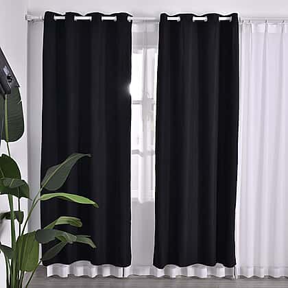 MONEY SAVER- Set of 2 - Homesmart UV Protected Heat Retaining Thermal, Blackout Curtains with Metal Eyelets (Size 240x132 Cm - 94.4 x 51.9 inches) - Black