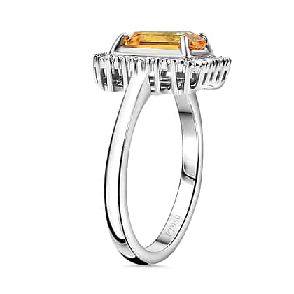 MONSTER DEAL - 950 Platinum AAAA Chantaburi Yellow Sapphire & White Diamond (VS-E-F) Ring 2.18 Ct, Platinum Wt. 4.84 Gms.