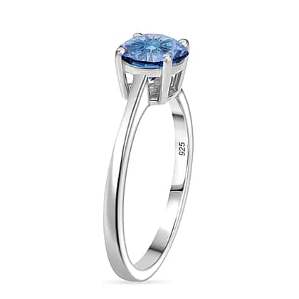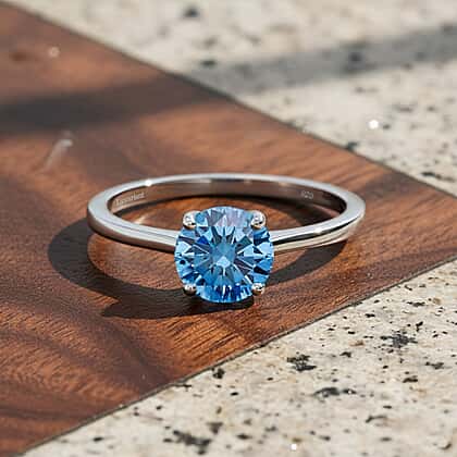 LUXURIANT 2 Ct. Lab Grown Blue Diamond Solitaire Ring in Rhodium Sterling Silver, SGL Certified