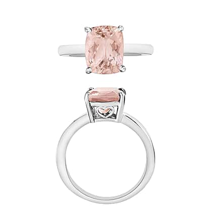 Morganite Solitaire Ring in Platinum Overlay Sterling Silver 2.84 ct 2.840 Ct.