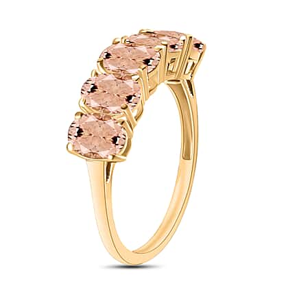 Morganite 5 Stone Ring in Vermeil Yellow Gold Sterling Silver 2.020 Ct