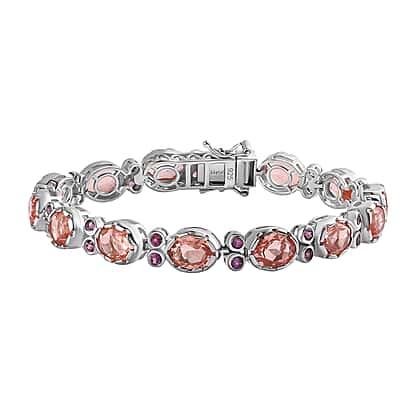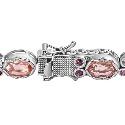Morganite Colour Quartz & Lotus Garnet Bracelet (Size 8) in Platinum Overlay Sterling Silver 24.80 Ct, Silver Wt 18.60 Gms.