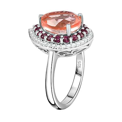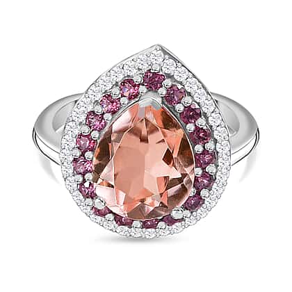 Morganite Colour Quartz, Natural Zircon & Lotus Garnet Ring in Platinum Overlay Sterling Silver 4.94 Ct.