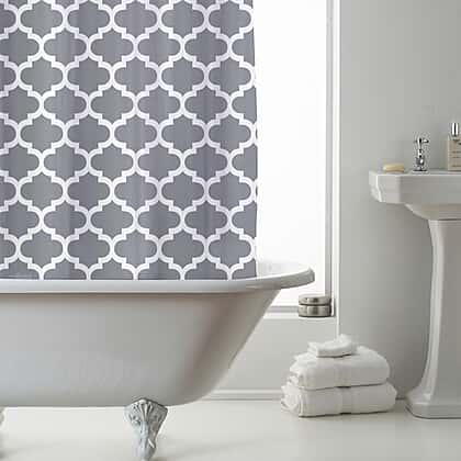 Moroccan Design Shower Curtains with Rings (Size 180x180 cm) - Grey