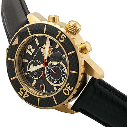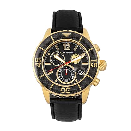 Morphic M51 Series Quartz Movt. 10ATM WR Black Dial with Yellow Case Mens Watch with Black Leather Strap