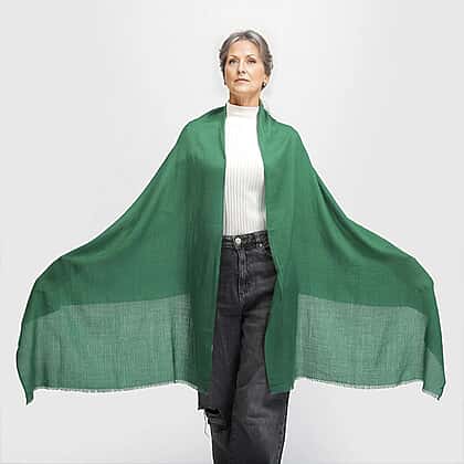 Mothers Day Gift Idea- La Marey 100% Cashmere Solid Wool Scarf with Gift Box (Size 190x70 cm) - Green