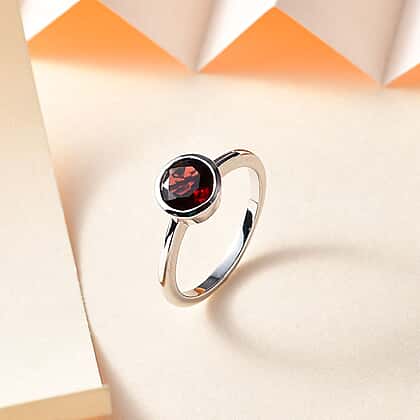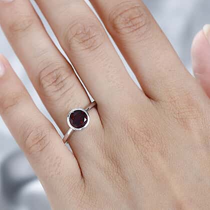 Mozambique Garnet Solitaire Ring in Platinum Overlay Sterling Silver, 1.580 Ct.