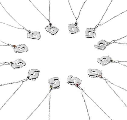 A beautiful gift for any mother-to-be or new mothers that will keep the special date of their child's birth close to their heart. The simplistic pendant gives the wearer a vintage inspired feel while it dangles on a chain accompanied with it. The bottom of the baby feet design is embellished with a round faceted cut Mozambique Garnet, birthstone for January, using a bezel setting