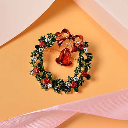 Christmas Wreath Brooch with Bell and Crystals