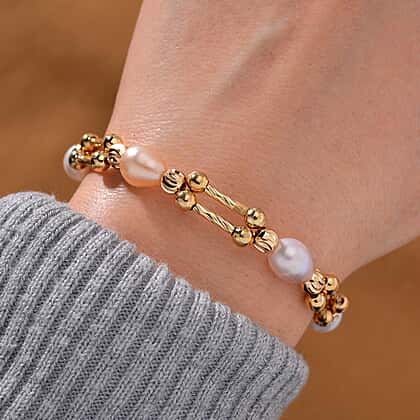 Multi Color Fresh Water Pearl Bracelet (Size - 7.5-2) in Yellow Gold Tone 10.00 Ct.
