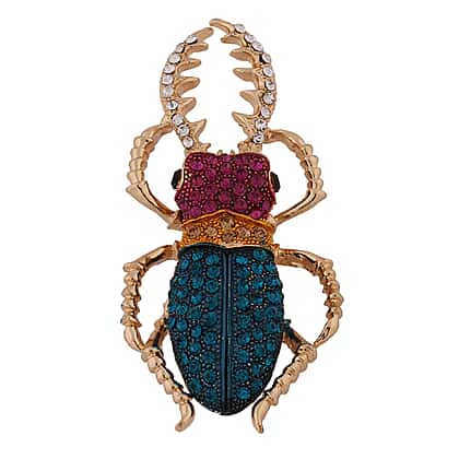 Multi Colour Austrian Crystal Beetle Brooch in Yellow Gold Tone