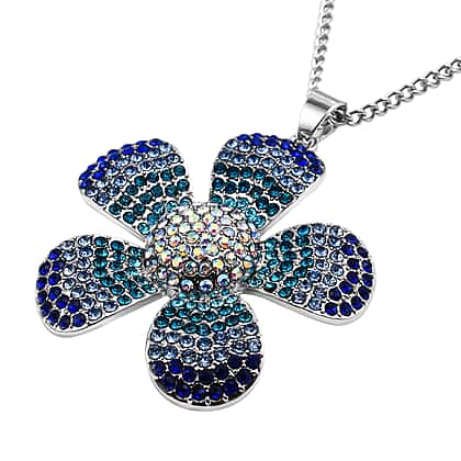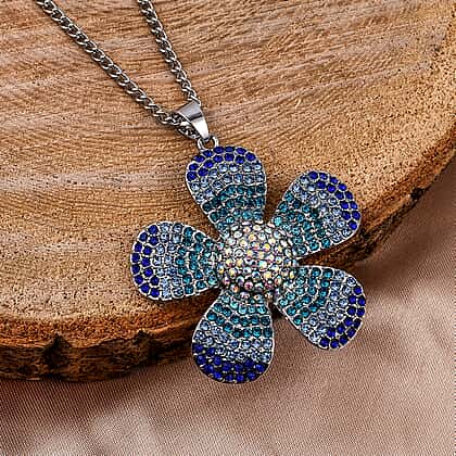 The shimmer of this multi-colour crystal floral pendant with a chain will add a beautiful charm to your outfits and create a coveting look for you. Crafted in mixed metal, the pendant and chain offer a solid base and can be worn daily with your casual or formal dress. The round free faceted cut multi-coloured crystals are set in the flower, exhibiting shades of blue on the petals and sparkling white reflection in the centre. The reverse tapered bail on the top creates easy movement of the accompanying chain and completes this joyous pendant necklace's look.