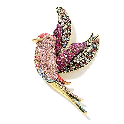 Multi Colour Austrian Crystal Hummingbird Brooch in Gold Tone