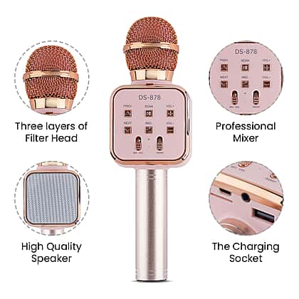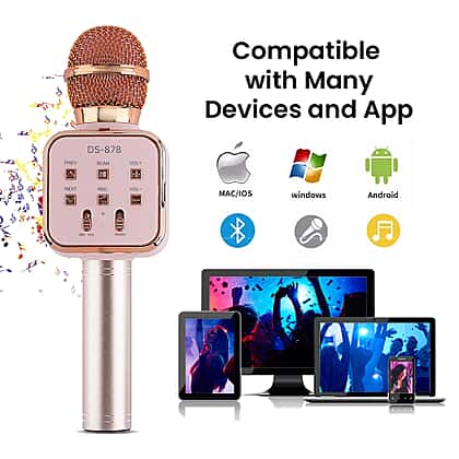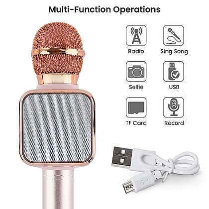 Multi-Function and Rechargeable Wireless Handheld Karaoke Bluetooth Microphone, Recording with a Mobile Phone, Selfie Function, and Radio Mode for Birthday Parties, Parties, Get-Together - Rose