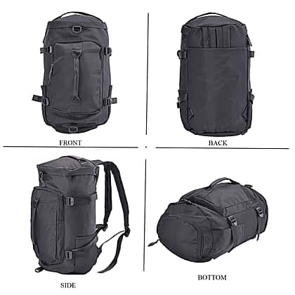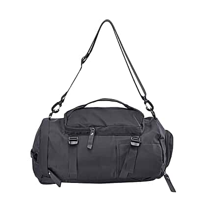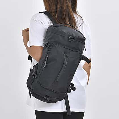Multi-Function Travel Bag with Backpack Straps & 4 Exterior Zipped Pockets - Black