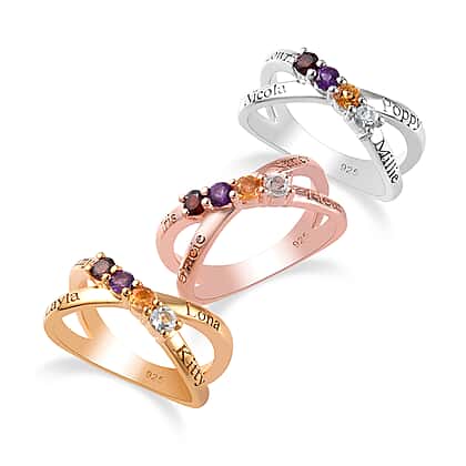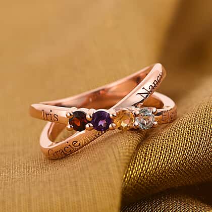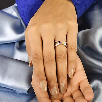 Multi-Gem Ring Stone in Platinum Plated Sterling Silver