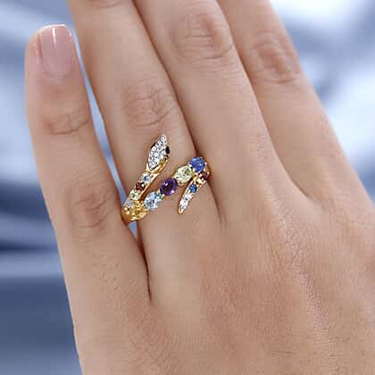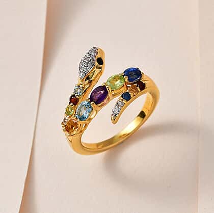Multi Gemstone Snake Ring in 18K Vermeil Yellow Gold Plated Sterling Silver 1.38 Ct.