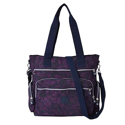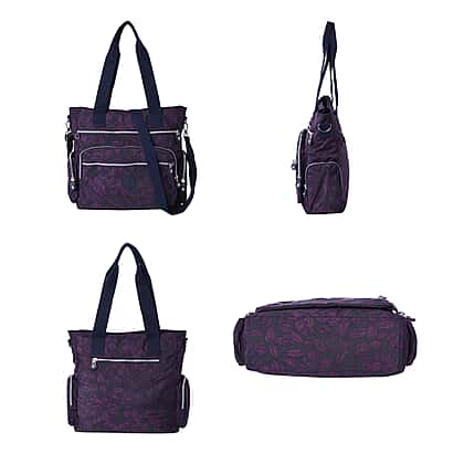 Multi-Pocket Floral Pattern Satchel Bag with Detachable Shoulder Strap (36x15x33cm) - Black